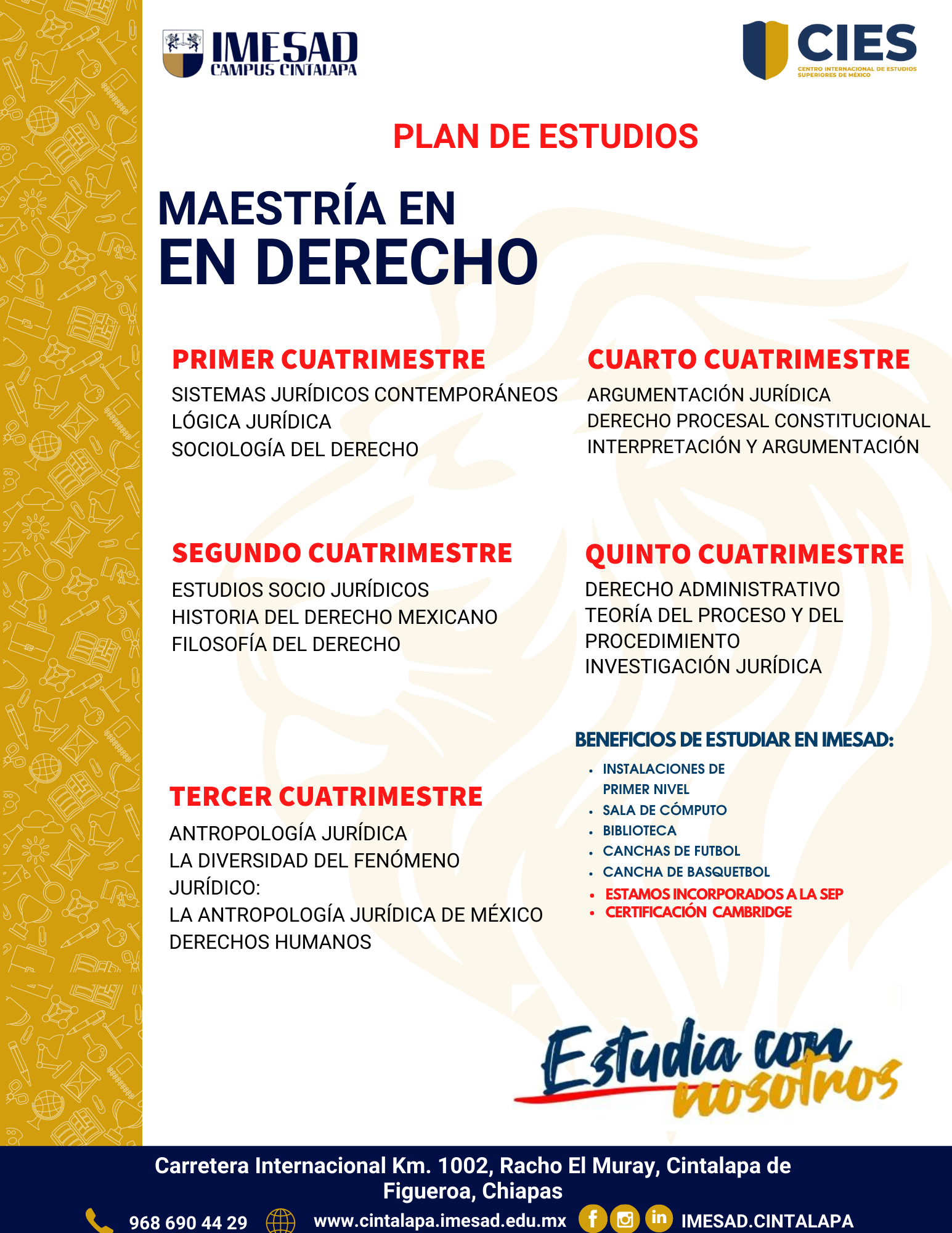Estudia en una de las mejores universidades en Morelos, contamos con una oferta educativa amplia: estudia Especialidad en Psicología Clínica, Licenciatura en Ciencias de la Educación, Licenciatura en Contaduría Pública, Licenciatura en Derecho, Licenciatura en Mercadotecnia, Maestría en Ciencias de la Educación, Maestría en Terapia Familiar, Maestría en Derecho Penal, Maestría en Administración, Especialidad en Psicología Clínica, Maestría en Derecho, Licenciatura en Ciencias de la Educación, Licenciatura en Contaduría Pública, Licenciatura en Derecho, Licenciatura en Mercadotecnia, Licenciatura en Administración de Empresas Turísticas, Licenciatura en Psicología, Licenciatura en Gastronomía, Licenciatura en Administración de Empresas