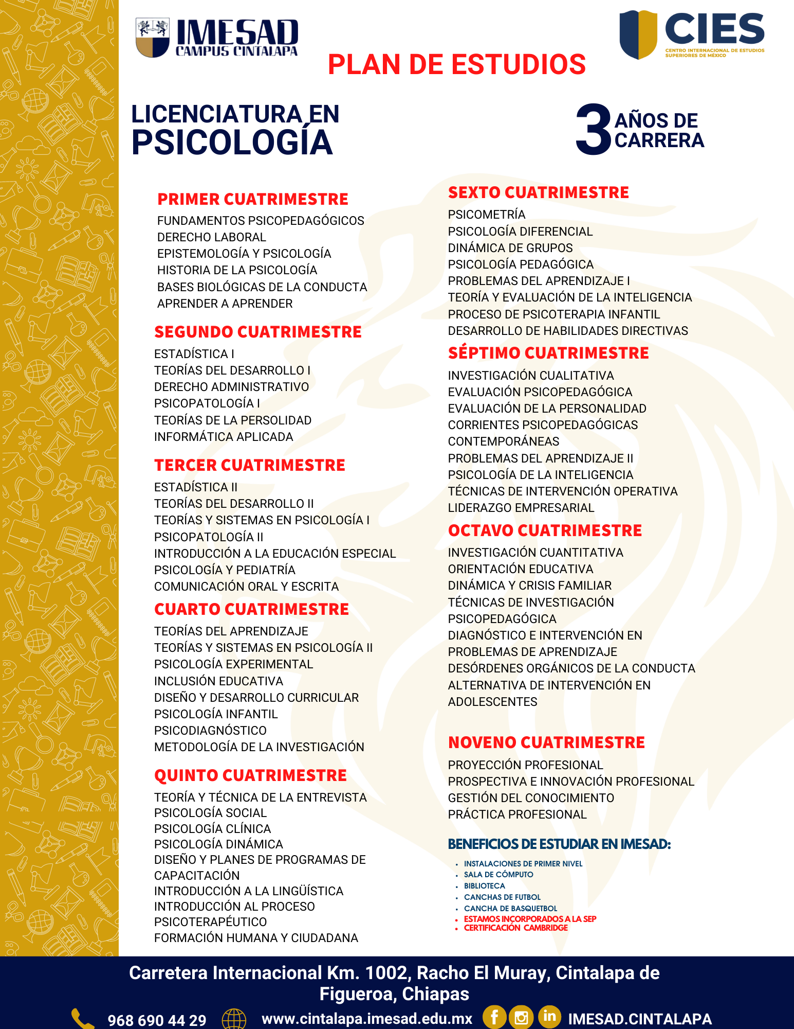 Estudia en una de las mejores universidades en Morelos, contamos con una oferta educativa amplia: estudia Especialidad en Psicología Clínica, Licenciatura en Ciencias de la Educación, Licenciatura en Contaduría Pública, Licenciatura en Derecho, Licenciatura en Mercadotecnia, Maestría en Ciencias de la Educación, Maestría en Terapia Familiar, Maestría en Derecho Penal, Maestría en Administración, Especialidad en Psicología Clínica, Maestría en Derecho, Licenciatura en Ciencias de la Educación, Licenciatura en Contaduría Pública, Licenciatura en Derecho, Licenciatura en Mercadotecnia, Licenciatura en Administración de Empresas Turísticas, Licenciatura en Psicología, Licenciatura en Gastronomía, Licenciatura en Administración de Empresas