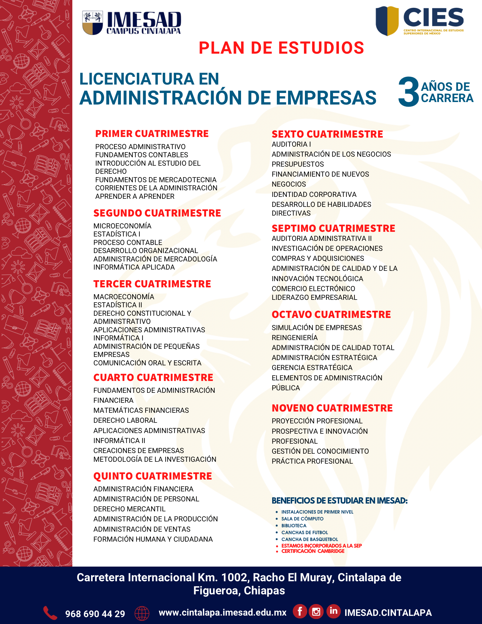 Estudia en una de las mejores universidades en Morelos, contamos con una oferta educativa amplia: estudia Especialidad en Psicología Clínica, Licenciatura en Ciencias de la Educación, Licenciatura en Contaduría Pública, Licenciatura en Derecho, Licenciatura en Mercadotecnia, Maestría en Ciencias de la Educación, Maestría en Terapia Familiar, Maestría en Derecho Penal, Maestría en Administración, Especialidad en Psicología Clínica, Maestría en Derecho, Licenciatura en Ciencias de la Educación, Licenciatura en Contaduría Pública, Licenciatura en Derecho, Licenciatura en Mercadotecnia, Licenciatura en Administración de Empresas Turísticas, Licenciatura en Psicología, Licenciatura en Gastronomía, Licenciatura en Administración de Empresas