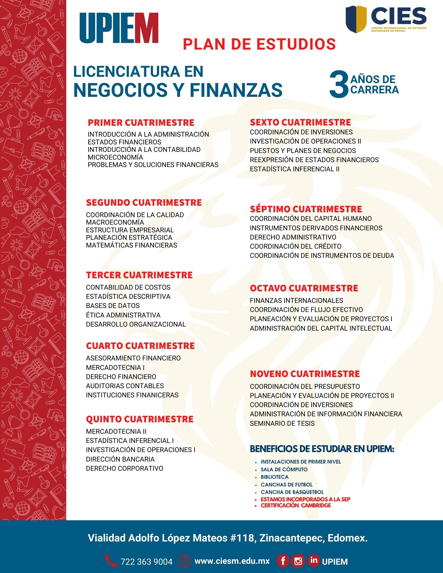 Estudia en una de las mejores universidades en Morelos, contamos con una oferta educativa amplia: estudia Especialidad en Psicología Clínica, Licenciatura en Ciencias de la Educación, Licenciatura en Contaduría Pública, Licenciatura en Derecho, Licenciatura en Mercadotecnia, Maestría en Ciencias de la Educación, Maestría en Terapia Familiar, Maestría en Derecho Penal, Maestría en Administración, Especialidad en Psicología Clínica, Maestría en Derecho, Licenciatura en Ciencias de la Educación, Licenciatura en Contaduría Pública, Licenciatura en Derecho, Licenciatura en Mercadotecnia, Licenciatura en Administración de Empresas Turísticas, Licenciatura en Psicología, Licenciatura en Gastronomía, Licenciatura en Administración de Empresas