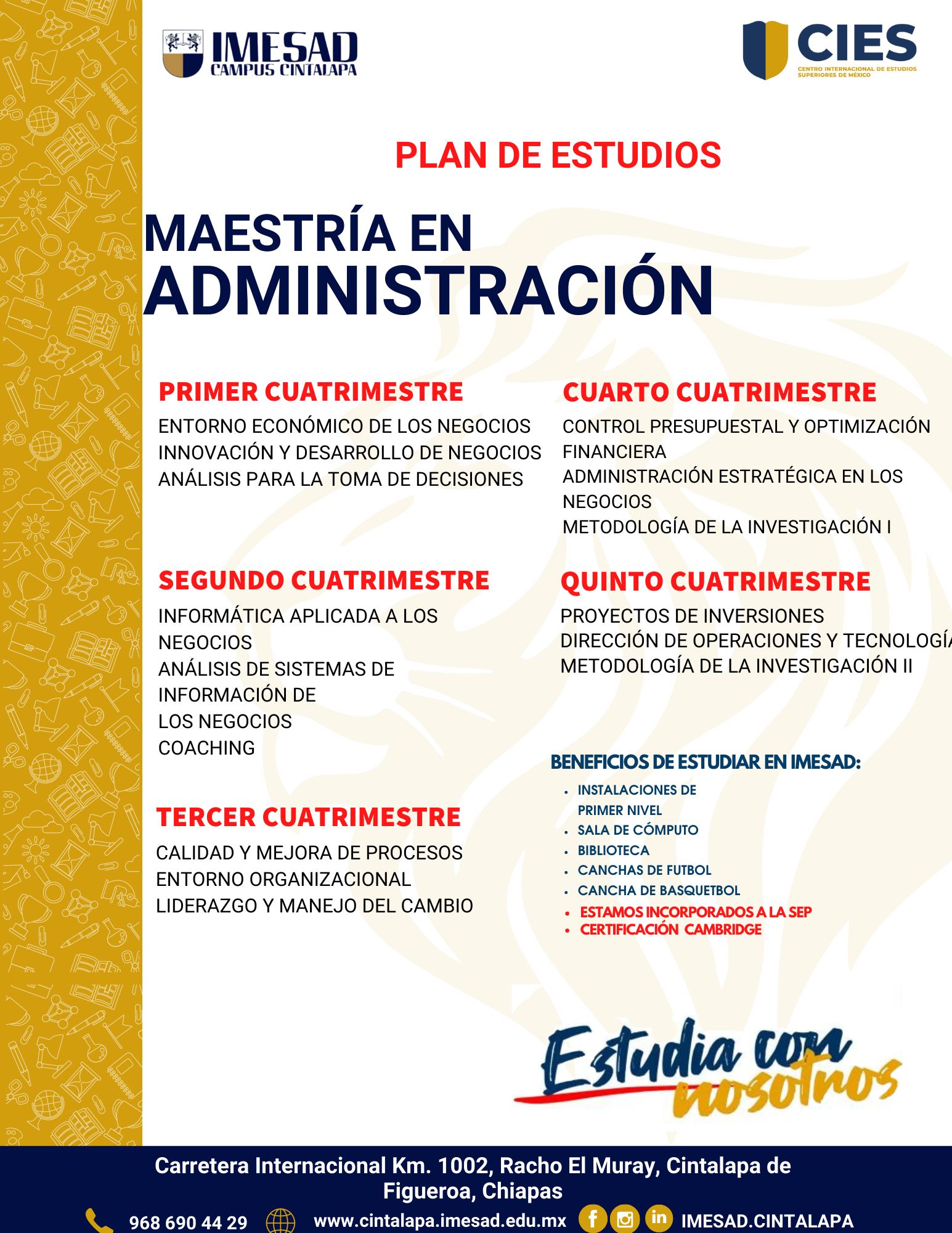 Estudia en una de las mejores universidades en Morelos, contamos con una oferta educativa amplia: estudia Especialidad en Psicología Clínica, Licenciatura en Ciencias de la Educación, Licenciatura en Contaduría Pública, Licenciatura en Derecho, Licenciatura en Mercadotecnia, Maestría en Ciencias de la Educación, Maestría en Terapia Familiar, Maestría en Derecho Penal, Maestría en Administración, Especialidad en Psicología Clínica, Maestría en Derecho, Licenciatura en Ciencias de la Educación, Licenciatura en Contaduría Pública, Licenciatura en Derecho, Licenciatura en Mercadotecnia, Licenciatura en Administración de Empresas Turísticas, Licenciatura en Psicología, Licenciatura en Gastronomía, Licenciatura en Administración de Empresas