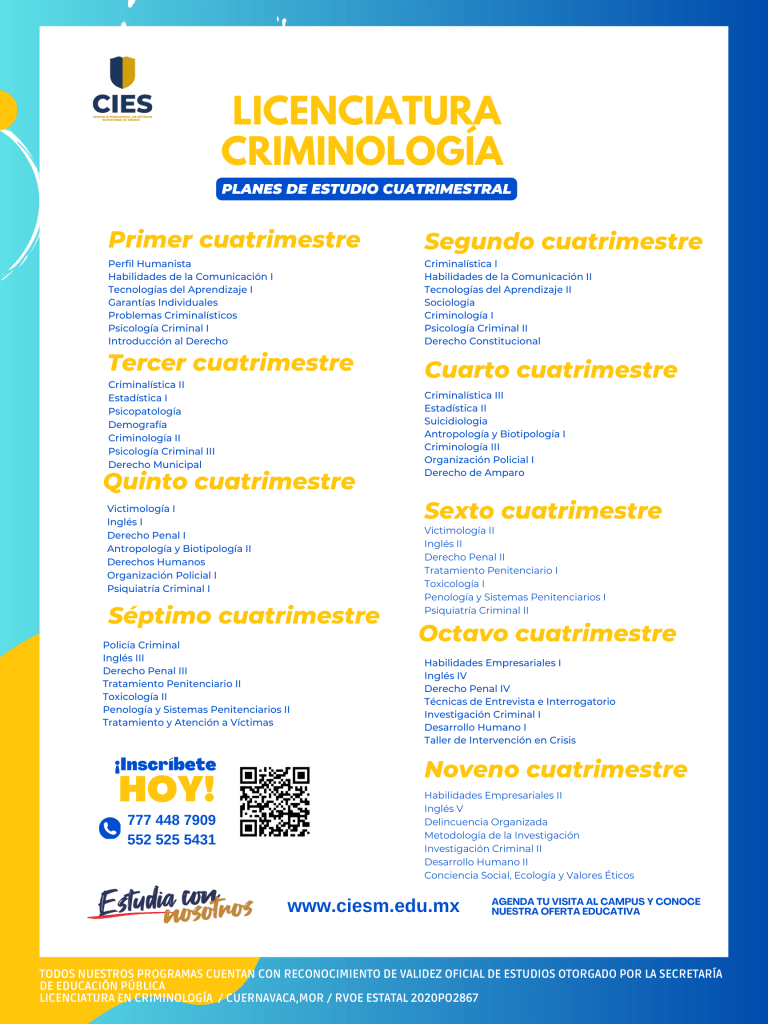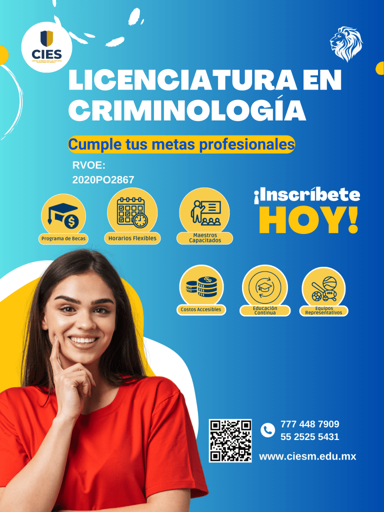Escolarizado Lunes a Viernes de 08:00 a 18:00 hrs El licenciado en criminología es capaz de analizar los hechos de de un crimen y conductas antisociales. Con la investigación de los hechos y acciones logra mostrar el origen del crimen.
